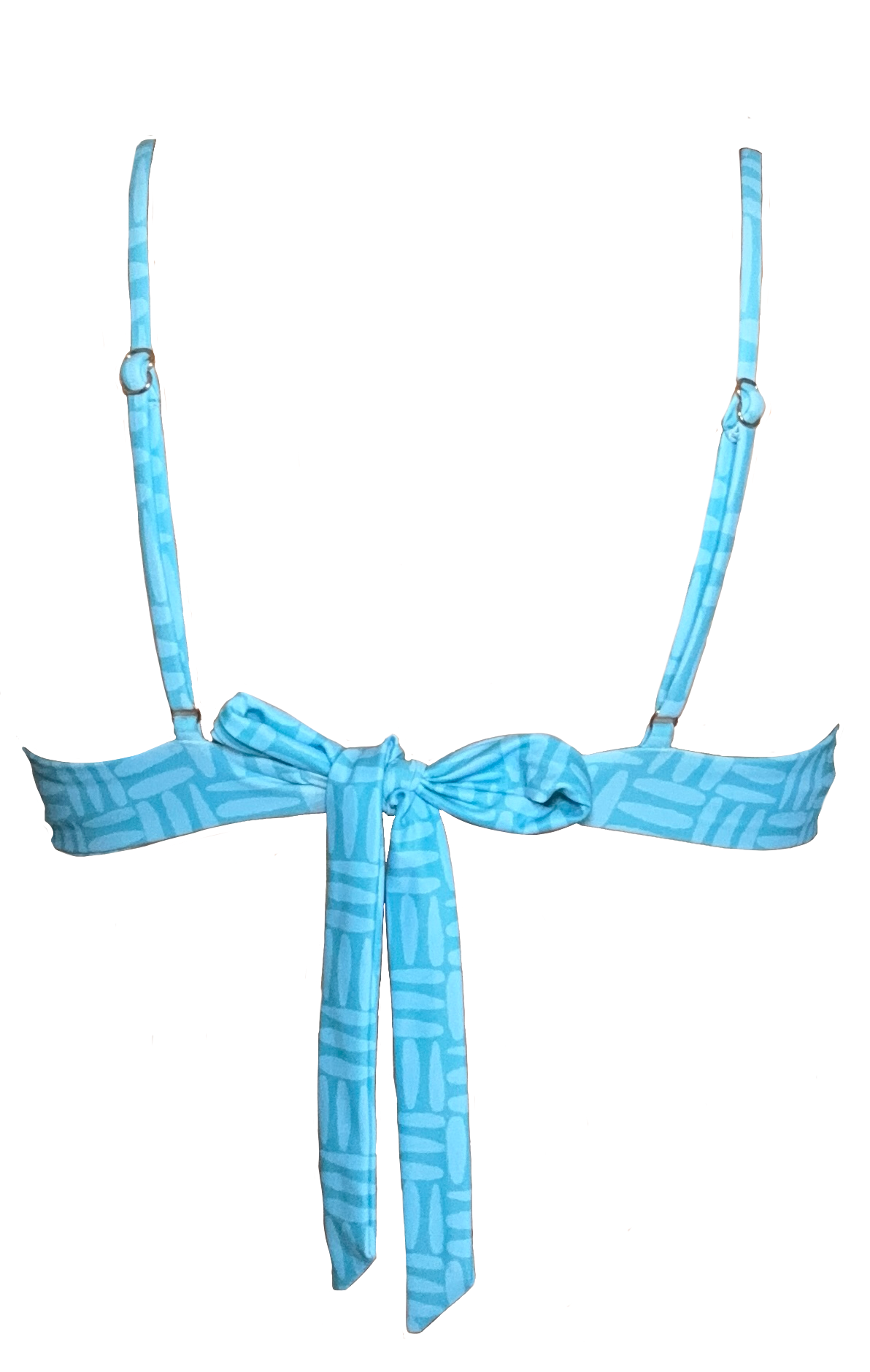 A chic and supportive underwire bikini top designed for the perfect fit. With adjustable straps and a secure tie-back closure, this top offers extra comfort and size inclusivity while keeping you stylish. The textured blue fabric gives off effortless coastal vibes, perfect for a day at the beach or lounging poolside.